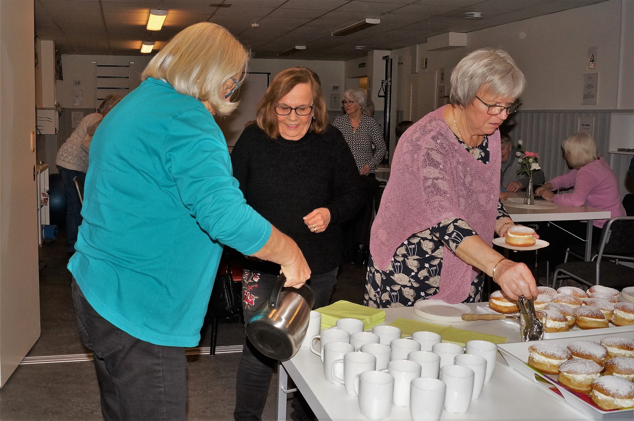 Kaffe och semlor förbereds av Ann-Sofie Lundin och Ulla Hallén.