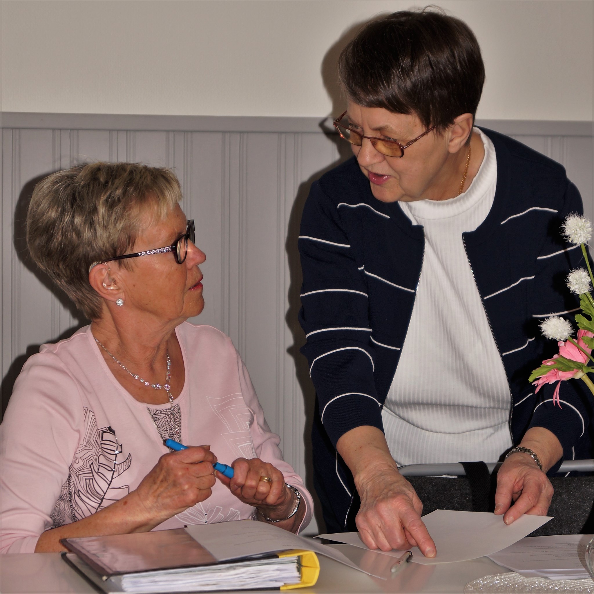 Karin Rickheden och Sonia Fredriksson i något viktigt samtal före årsmötet.