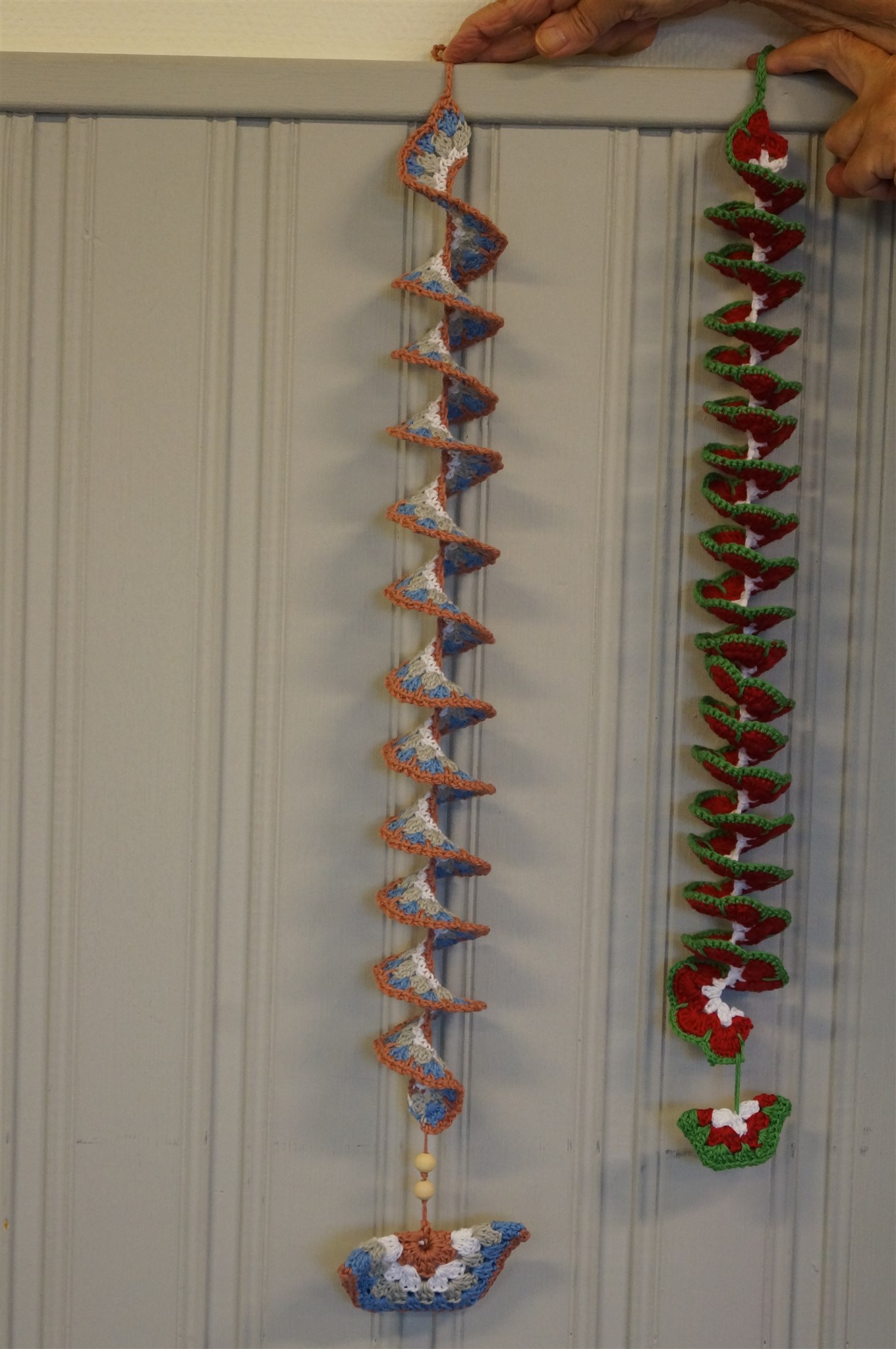 Exempel på de populära virkade vindsnurrorna.